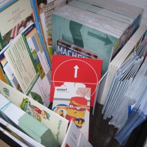 Außerdem gibt es eine beachtliche Sammlung an Flyern und Infomaterial, was ihr auf Anfrage ebenfalls verwenden könnt.
