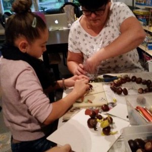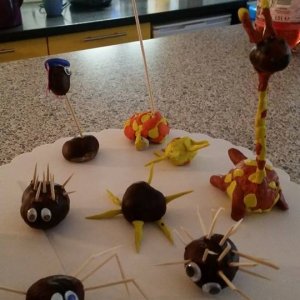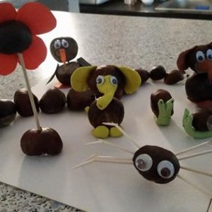 In unserer Kreativwerkstatt wurde gestern mit Kastanien gebastelt.