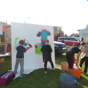 Die zahlreichen Besucher konnten dort ihre eigenen T-Shirts oder Beutel bedrucken lassen und Graffiti ausprobieren.